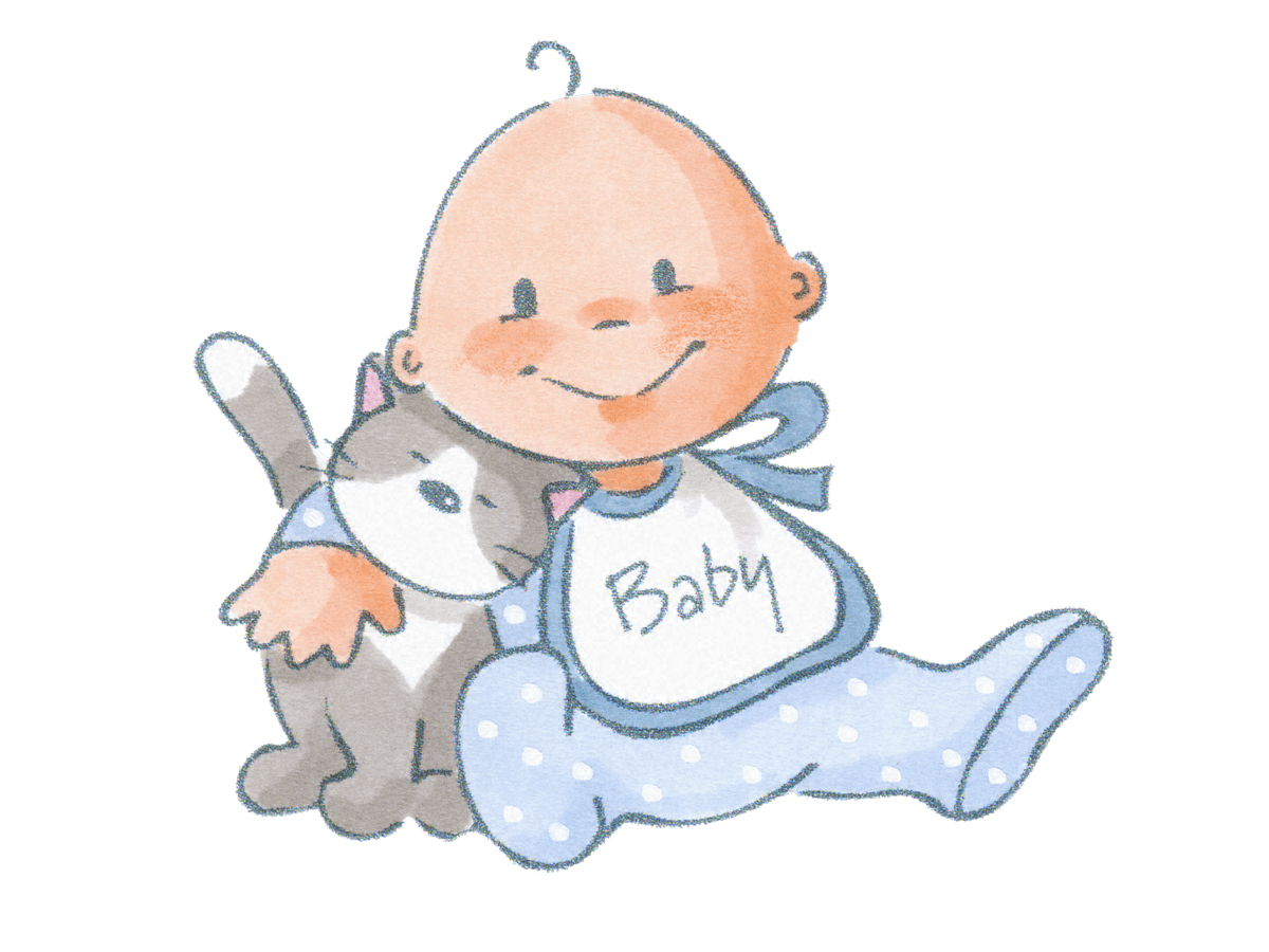 Baby Boy Sitting Hugging Cat