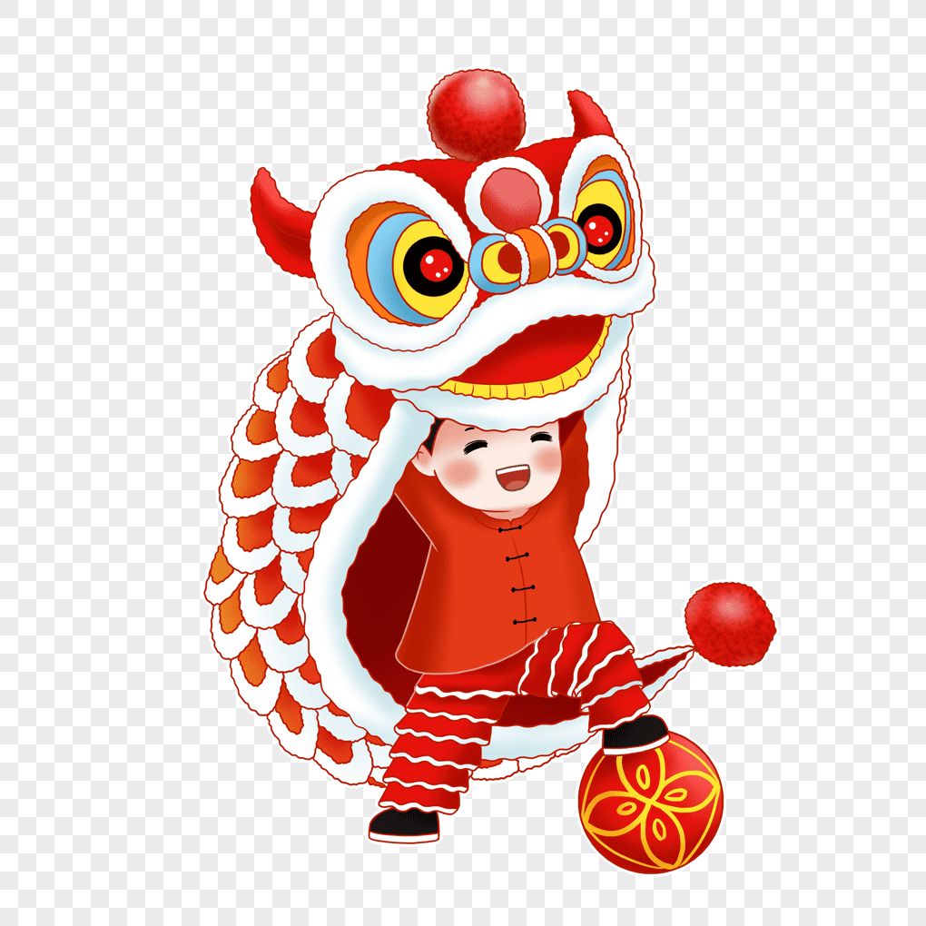 The Kid Is Performing The Lion Dance.