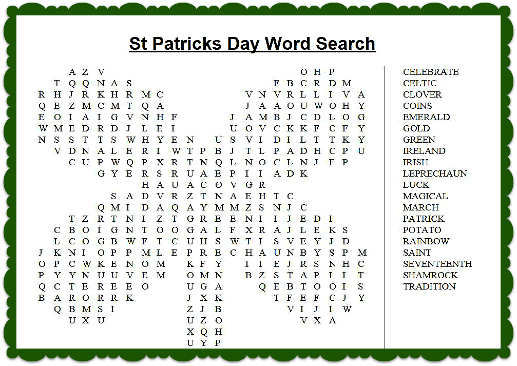 St Patrick’s Day Word Search Printable Free Photo png